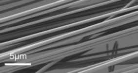 Die Bezeichnung Nanofaser bezieht sich hierbei auf den Durchmesser der Fasern. Dieser kann abhängig vom Material und den vorgegebenen Spinnbedingungen sogar wenige Nanometer erreichen, was einigen wenigen Milliardstel Metern entspricht. Eine unter dem Rasterelektronenmikroskop analysierte Probe mit Nanofasern ist hier in der rechten Abbildung dargestellt.