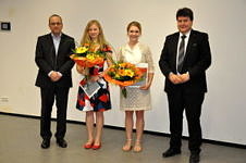Prof. Dr. Peter Weidinger vergab zudem zwei Preise der Firma Brose – je 1500 Euro, die für einen geplanten Auslandsaufenthalt im Rahmen des Studiums bestimmt sind. Frau Melissa Halmheu und Frau Stefanie Klostermeier durften diese beiden Preise in Empfang nehmen.