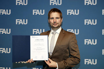 Dr. rer. nat. Stephan E. Wolf, Privatdozent und Leiter einer Emmy-Noether-Forschungsgruppe am Lehrstuhl für Glas und Keramik (WW3) des Department Werkstoffwissenschaften, ist mit dem FAU-Lehrpreis ausgezeichnet worden.