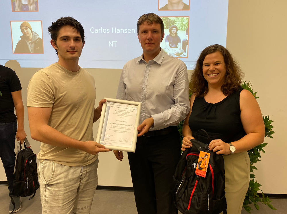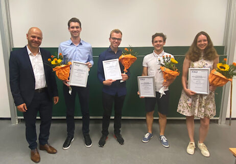 Sophie Dreyer from the bachelor’s program MWT as well as Berit Krause, Ali Elkholey, Niklas Kardatzki, Peter Szalay and Carlos Hansen from the bachelor’s program NT received this year’s Semikron study prize, which was awarded representatively by Ms. Oberndörfer as well as Clemens Vennebusch, also a graduate of the MWT program at FAU.