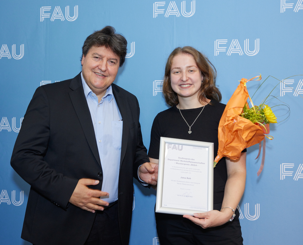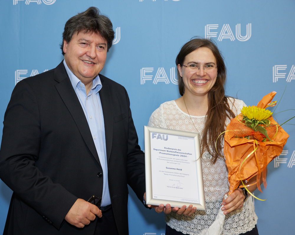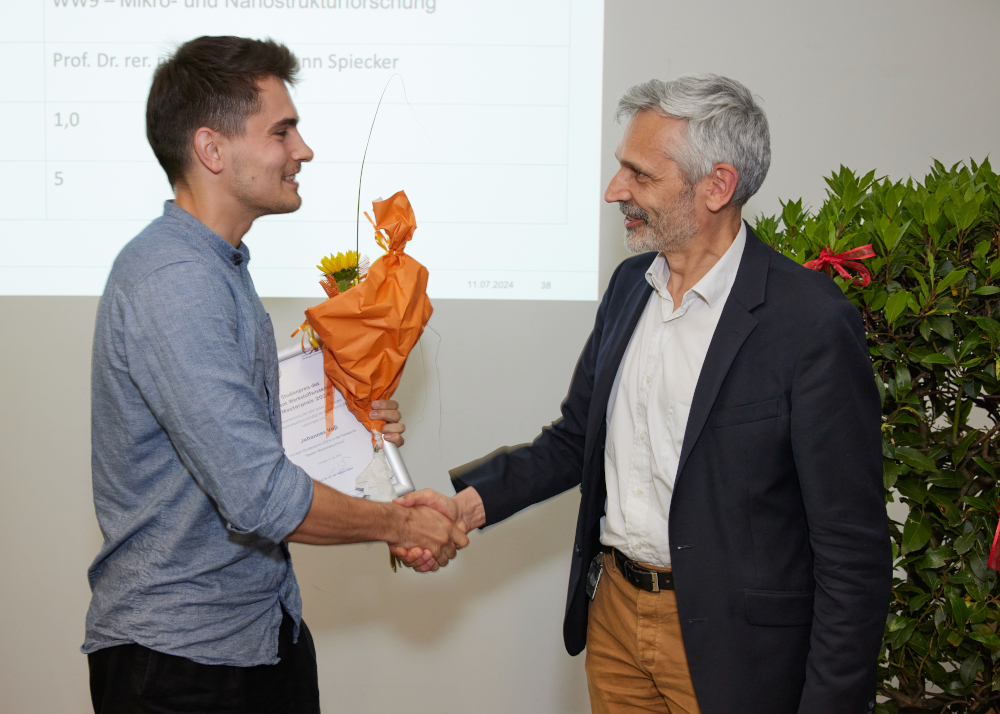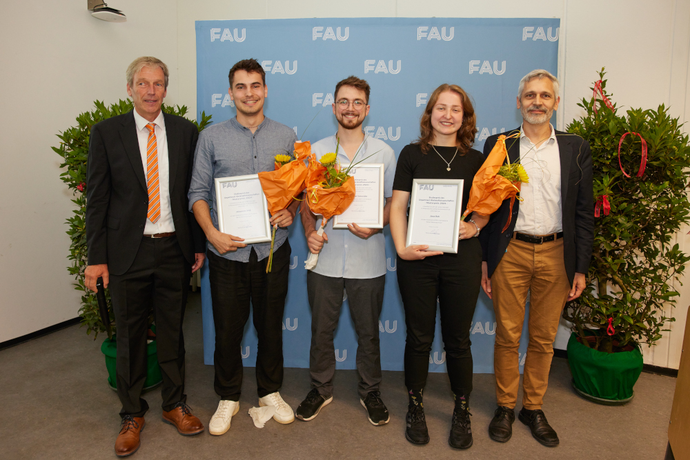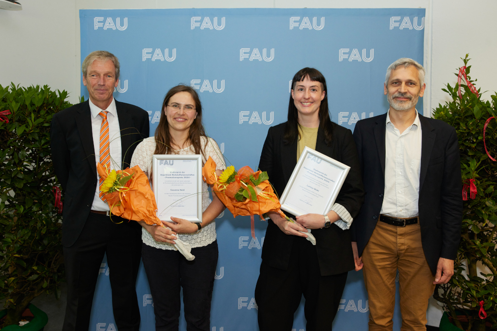The department prizes were awarded by Prof. Göken. Alexandre Nozadze and Tobias Wagner received the prizes for the best Bachelor’s degrees. One Master’s degree prize each went to the students Jana Reh, Johannes Voß and Nicolai Schneider. Last but not least, Susanne Heid and Larissa Wahl were honored with a prize for their excellent doctorates.
