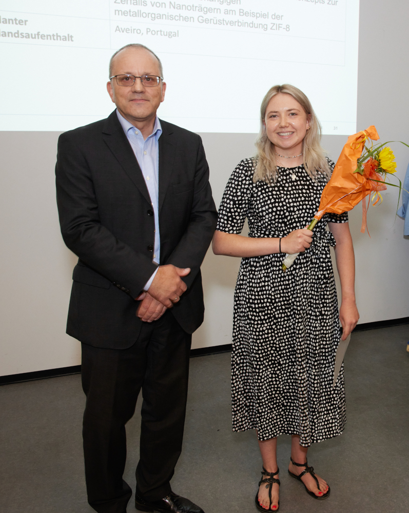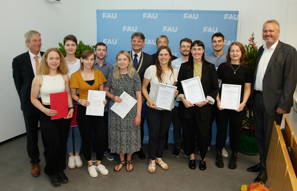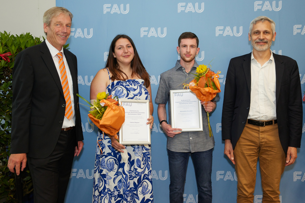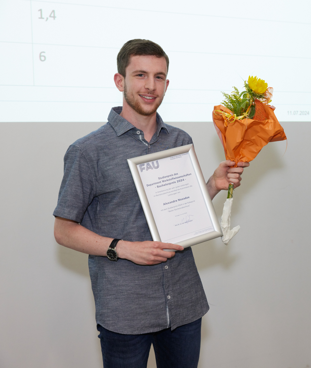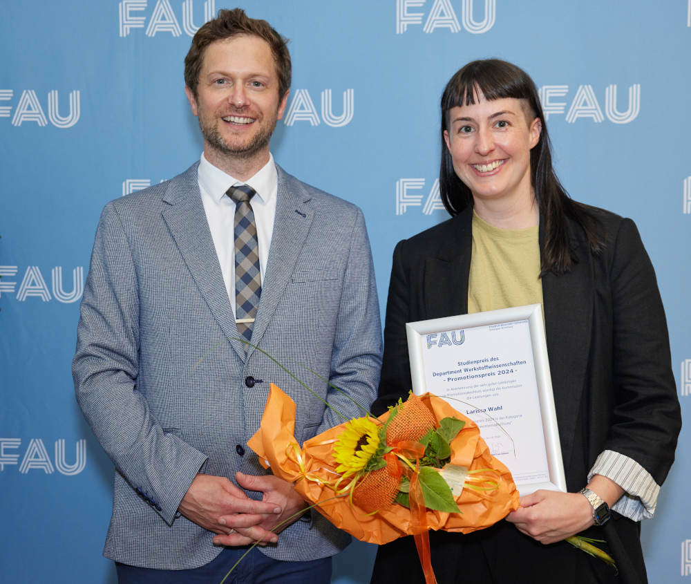 The department prizes were awarded by Prof. Göken. Alexandre Nozadze and Tobias Wagner received the prizes for the best Bachelor’s degrees. One Master’s degree prize each went to the students Jana Reh, Johannes Voß and Nicolai Schneider. Last but not least, Susanne Heid and Larissa Wahl were honored with a prize for their excellent doctorates.