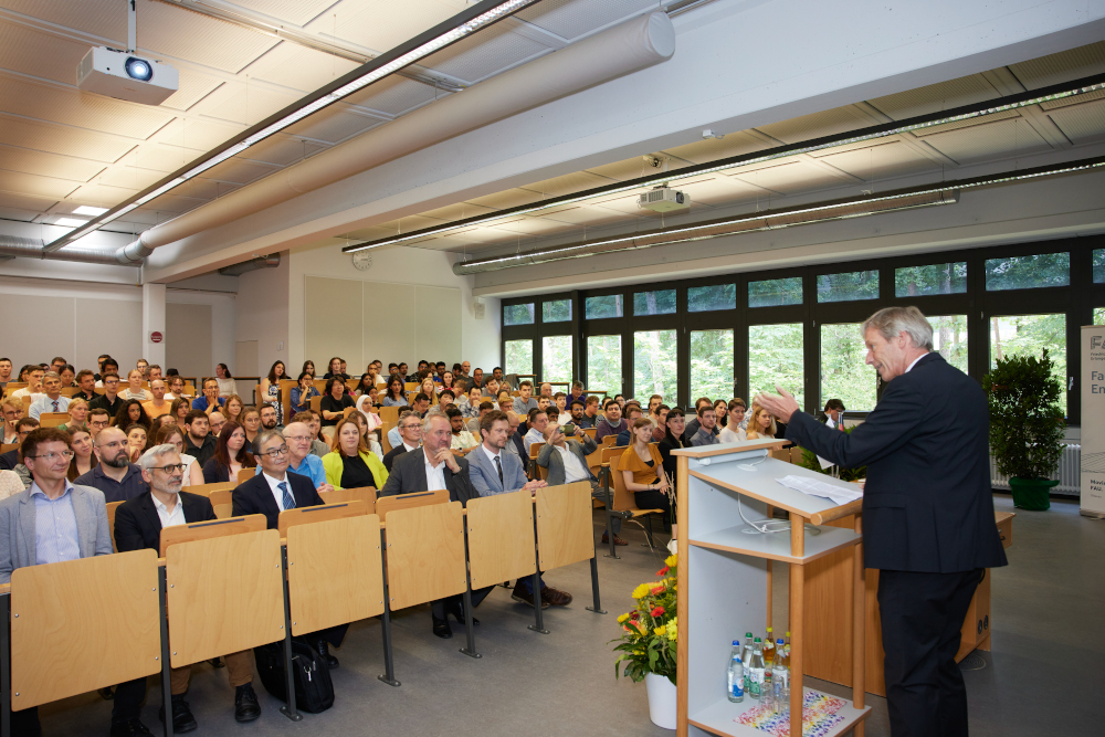 Department spokesperson Prof. Dr. Mathias Göken gave the opening words of welcome. He looked back on the past year as well as forward to future developments in the field of study courses, in particular the newly established Bachelor’s degree course in AI Materials Technology, which will start in the coming winter semester.