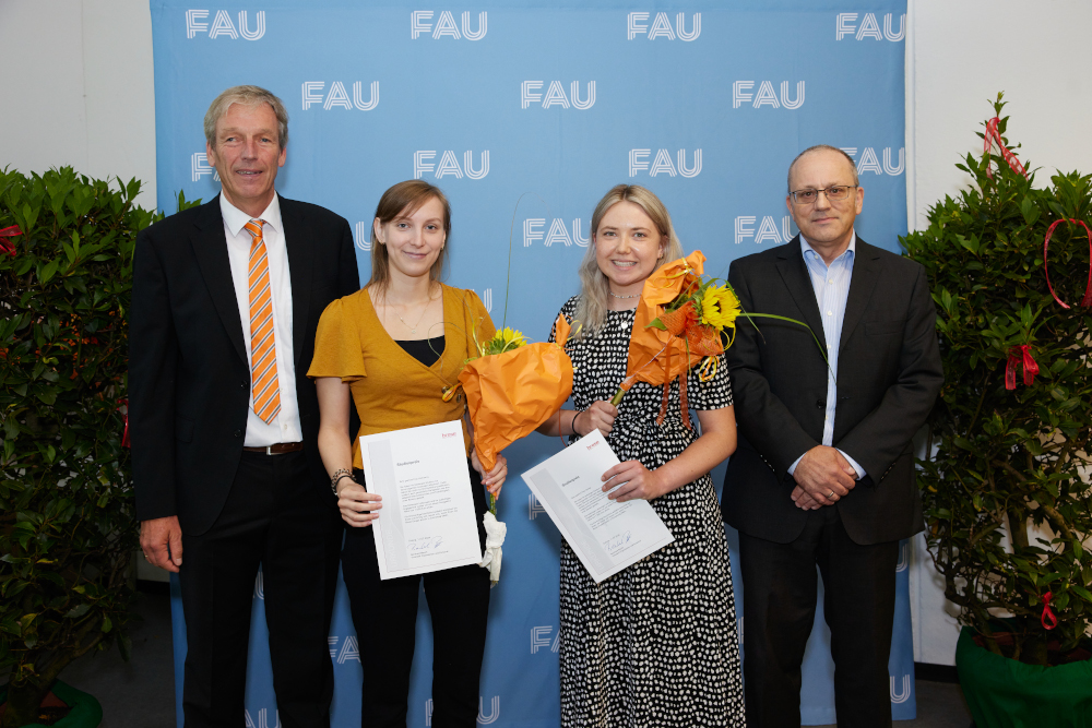 Prof. Dr. Peter Weidinger awarded the Brose Prizes to Master’s students Yara Gerigk and Anna Hartmann for their outstanding academic achievements. The prize money is linked to a planned stay abroad, which the two students intend to spend in France and Portugal respectively.