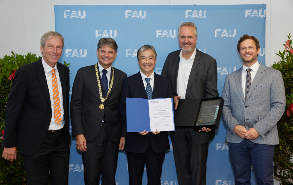 FAU President Prof. Dr. Hornegger spoke the introductory words and then handed over to Prof. Dr. Kyle Webber, who has had a scientific relationship with Prof. Kakimoto for many years, to deliver the laudatory speech.