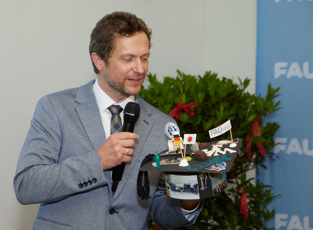 He briefly outlined the path that led to the close relationship between FAU and Prof. Kakimoto. It began back in 1999 with a meeting between Kakimoto and the former Chair of the Department of Glass and Ceramics, Prof. Dr. Peter Greil, and led to a large number of collaborations, projects and exchange programs between FAU and NITech.