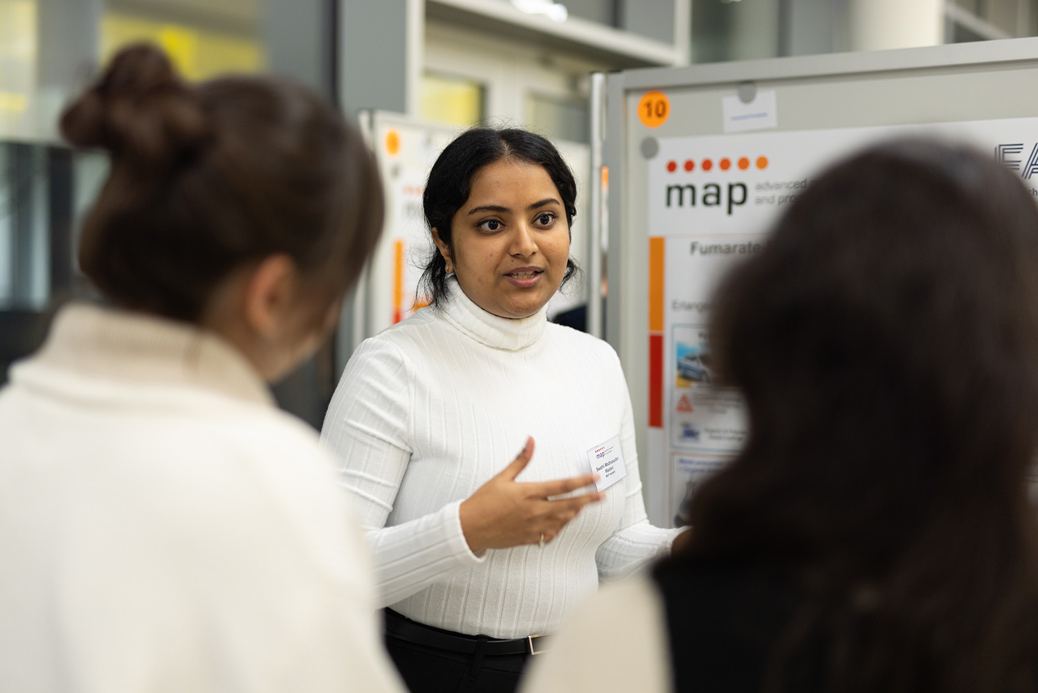 On February 4, 2026, the degree program celebrated its 20th anniversary. The event included a symposium with presentations by various professors involved in the MAP program, covering the program’s historical foundation and initial steps (Prof. Müller, initiator of the MAP program), its current development (Prof. Felfer and Prof. Vogel, MAP Chairs), the significance of the program for the development of FAU (Prof. Peukert, long-standing lecturer in MAP), and the broader importance of international research and the exchange of scientific ideas for both host and guest countries (Prof. Boccaccini). The event concluded with the annual poster session, where MAP students from their third semester presented their mini-projects as part of the celebration.